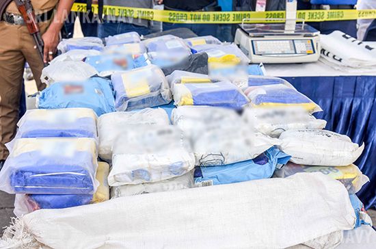 The intercepted trawler, carrying 02 suspicious sacks, and suspects were escorted to the Dikowita Fisheries Harbour today (08 Mar 26). A specialised inspection conducted by the Police Narcotic Bureau (PNB) confirmed that the sacks contained more than 102kg of heroin and over 900g of cocaine. The detection was inspected on-site by the Deputy Minister of Defence, Major General Aruna Jayasekara (Retd), alongside the Commander of the Navy, Vice Admiral Kanchana Banagoda.