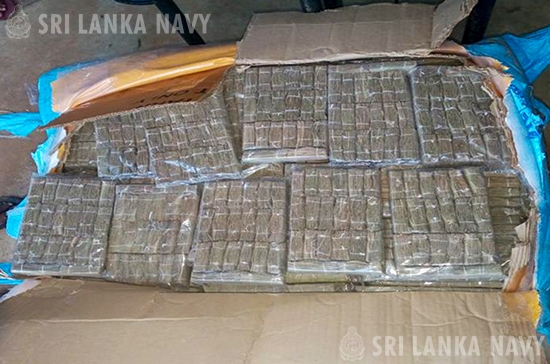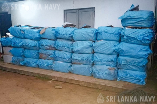 The Sri Lanka Navy seized a significant quantity of smuggled goods, including over 1,002kg of Kendu leaves (in wet weight) and approximately 116kg of Cardamom, during a search operation conducted at the Mampuri beach area in Puttalam on 15 Mar 26. The operation also led to the apprehension of 02 suspects and the seizure of a dinghy (01) used for the illegal transfer.