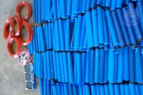 Naval troops attached to SLNS Thambapanni of the North Western Naval Command on information received arrested 02 persons with a haul of explosive devices including 510 sticks of Gelignite weighing 75 kilograms in the general area Anamaduwa-Paramakandagama on 21st January 2014. Four hundred and twenty-four (424) non-electric detonators and 06 safety fuses were among the recovered items.