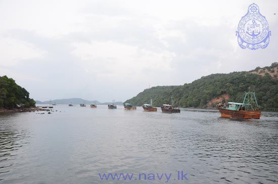 The Sri Lanka Navy assisted in the repatriation of the third batch of one hundred eleven Indian fishermen with fifteen fishing boats on 25th January 2014. They were handed over to the Indian Coast Guard Ship “Vigraha” at the International Maritime Boundary Line off Kankasanthurei.