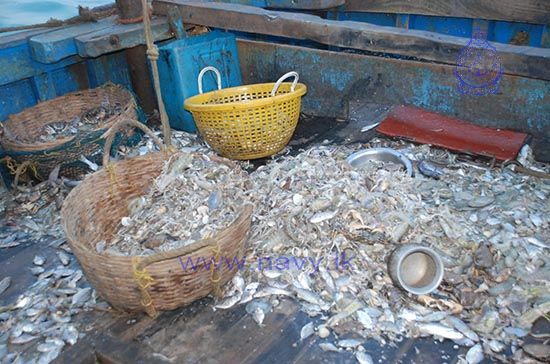 Naval craft attached to the Northern Naval Command on routine patrol arrested 30 Indian fishermen along with 08 Indian fishing boats engaged in illegal fishing in the seas off Delft on 03rd February 2014. The arrested fishermen and boats were handed over to the officials of the Department of Fisheries and Aquatic Resources in Jaffna for legal action.
