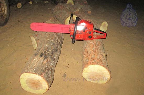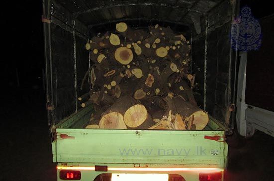 Naval troops attached to SLNS Vijaya of the North Western Naval Command with the assistance of Kalpitiya Police arrested 03 persons illegally transporting timber in the general area of Kuringipitti-Kurusupadu on 10th February 2014. Six Kohomba logs, 02 Akeshia logs, a chain saw and the truck used for the illegal act were handed over to Kalpitiya Police for further investigations