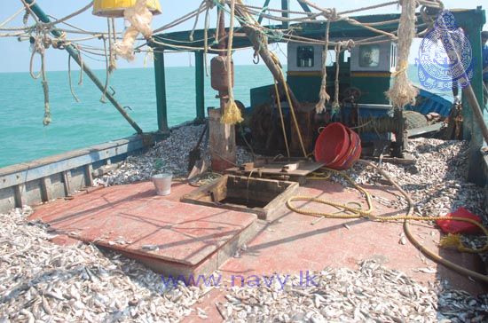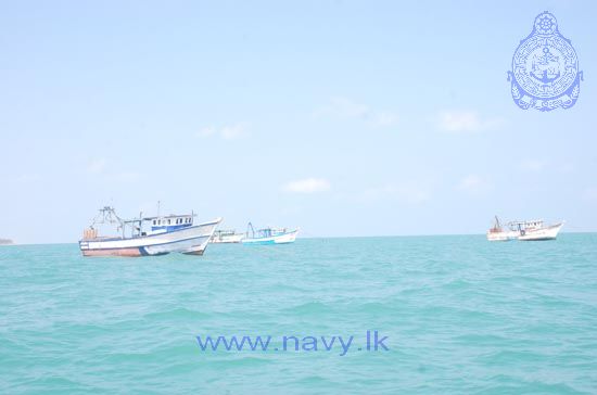 Naval vessels attached to the North Central Naval Command on routine patrol arrested 19 Indian fishermen and 04 Indian fishing trawlers engaged in poaching in the seas north of Mannar on 26th March 2014. The arrested fishermen and the trawlers were handed over to the officials of the Department of Fisheries and Aquatic Resources in Thalaimanner for legal action.