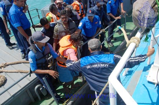 Sri Lanka Navy assisted the repatriation of 36 Indian fishermen on 11th June 2014. The fishermen were handed over to the Indian Coast Guard Ship “Raj Kamal” at the International Maritime Boundary Line off Kankasanthurei. Naval patrol craft attached to the Northern Naval Command were deployed for the humanitarian mission.
