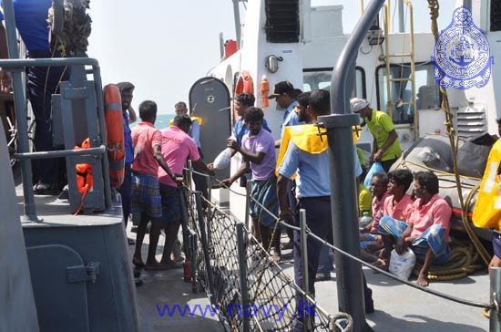 Sri Lanka Navy assisted the repatriation of 22 Indian fishermen on 27th June 2014. They were handed over to the Indian Coast Guard Ship C137 and H190 at the International Maritime Boundary Line off Thalaimannar. Naval patrol craft attached to the North Central Naval Command were deployed for the humanitarian mission.