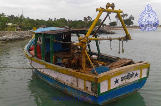 Naval Craft attached to the Northern Naval Command on routine patrol arrested four Indian fishermen with their trawler poaching in Sri Lankan waters North West of Delft 10th July 2014.