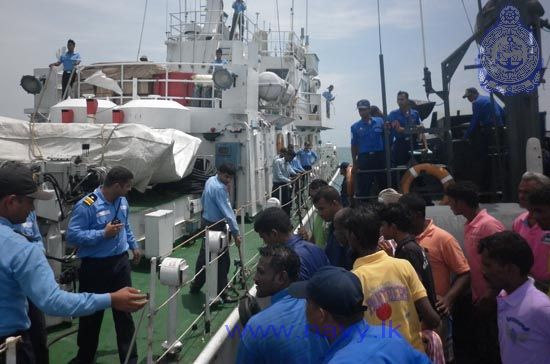 Sri Lanka Navy assisted the repatriation of 37 Indian fishermen on 12th July 2014. They were handed over to the Indian Coast Guard Ship “Rajtarang” at the International Maritime Boundary Line off Thalaimannar. Naval patrol craft attached to the North Central Naval Command were deployed for the humanitarian mission.