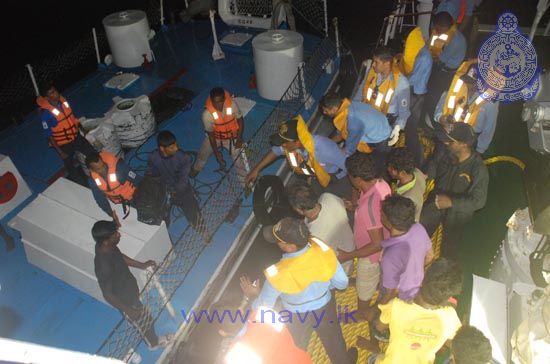 Sri Lanka Navy facilitated the repatriation of 23 Sri Lanka fishermen who had been released from the Indian custody. The fishermen along with 4 fishing trawlers were taken over from Indian Coast Guard Ship “Vishwast” at the Indo-Sri Lanka International Maritime Boundary Line (IMBL) North of Kankasanturai on 03rd September 2014.