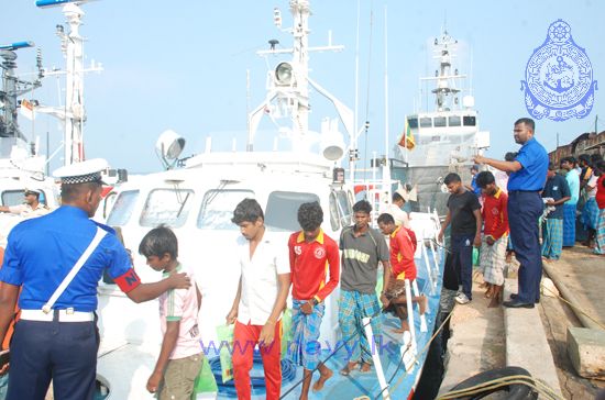 Sri Lanka Navy assisted the repatriation of 40 Indian fishermen released from Sri Lankan custody. They were handed over to the Indian Coast Guard Ship “Rajtharang” in the seas off Kankasanthurei at the International Maritime Boundary Line on 04th October 2014.