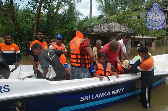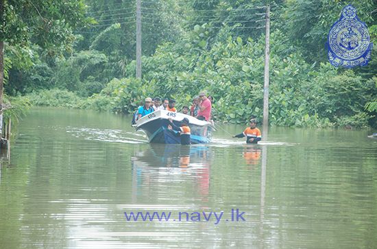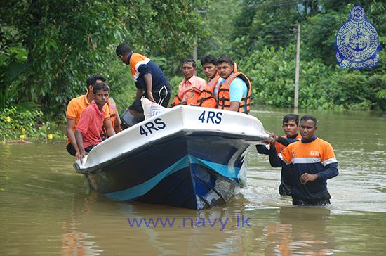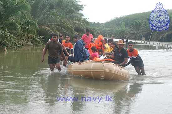 In response to the floods affecting several areas in the island due to the adverse weather conditions, Sri Lanka Navy deployed its personnel on flood relief operations to render assistance to the people affected. Naval personnel are engaged in evacuation of people to safe areas and assisting in the distribution of cooked meals provided by the relevant authorities.