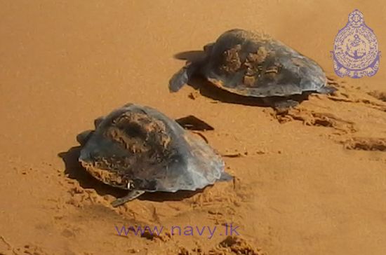 On information received, the naval troops detected 17 turtles weighing 15 to 20 kilogrammes each on the Peragaslanda beach in Wennapuwa. Three turtles had been found killed for sale while ten others were found dead. The naval troops took immediate action to hand over the remaining four turtles, which were found alive, to the officials of the Department of Fisheries and Aquatic Resources and to release them to sea.