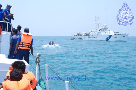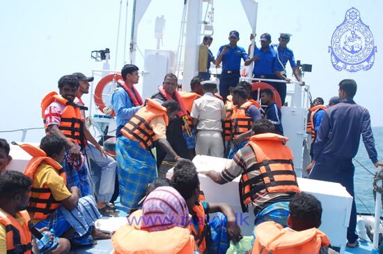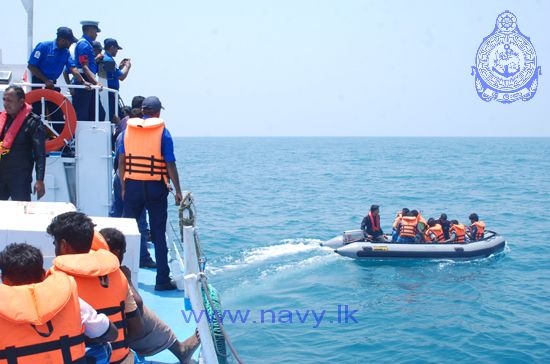 Sri Lanka Navy assisted the repatriation of 54 Indian fishermen released from Sri Lankan custody by providing them with safe passage onboard Sri Lanka Navy patrol craft Rathnadeepa attached to the Northern Naval Command and Sri Lanka Coast Guard vessel CG 47 on 25th March 2015. They were handed over to the Indian Coast Guard Ship Ameya at the International Maritime Boundary Line (IMBL) off Kankasanturei.