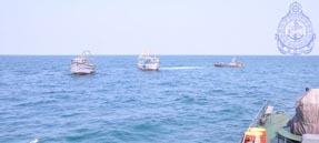 The Sri Lanka Navy assisted in the repatriation of 17 Indian fishermen and eight fishing trawlers on 07th March 2014.