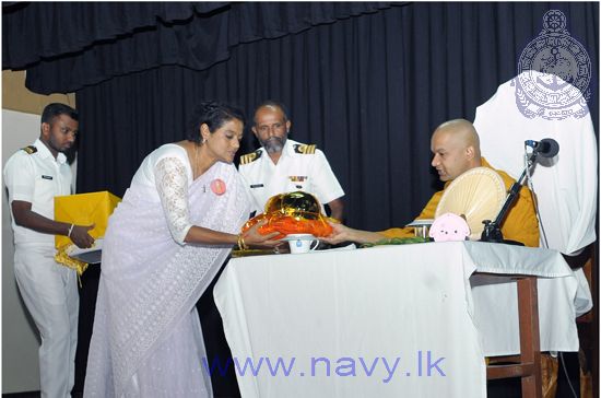 මෙම කාලෝචිත ධර්ම දේශණාව සඳහා මාවරලේ භද්ධිය ස්වාමීන් වහන්සේ වැඩම කරවන ලද අතර, එම ස්වාමීන්වහන්සේ වෙත පිරිකර වශයෙන් වියළි ආහාර සළාකයක් ද පූජා කෙරිණි. ඉන් අනතුරුව ක්රියාන්විත රාජකාරියේ යෙදී සිටියදී තුවාල ලබා ආබාධිත තත්ත්වයට පත්ව සිටින නාවික රණවිරුවන් 10 දෙනෙකු සඳහා ත්යාග ප්රදානය කිරීම ගරු සභාපතිතුමිය අතින් සිදු විය. ධර්ම දේශණය ශ්රවණය කිරීම සඳහා සැදැහැ සිතින් පැමිණ සිටි සියළුම පුද්ගලයින් වෙත එහිදී කෙටි ආහාර සහ තේ පැන් මෙන්ම දහවල් දානය පිළිගැන්වීමට ද සේවා වනිතාවෝ කටයුතු සංවිධානය කරන ලදී.