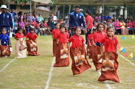 පෙර පාසල් දරු දැරියන් විසින් ආරාධිත අමුත්තන් පිළිගැනීමෙන් අනතුරුව ක්රීඩා උත්සවයේ තරඟ ආරම්භ කරන ලදී. එහිදී, ජවන හා පිටිය තරඟ සහ කණ්ඩායම් තරඟ රැසක් පැවැත්වූ අතර, එම අවස්ථාව විචිත්රවත් සරඹ සංදර්ශණයකින් ද අලංකාර විය. තරඟ අවසානයේ දක්ෂතා දැක්වූ දරු දැරියන් අගයනු වස් ඔවුන් හට කුසලාන සහ සහතික පත්ර පිරිනැමීම පැමිණ සිටි ආරාධිත අමුත්තන් අතින් සිදු කෙරිණි.