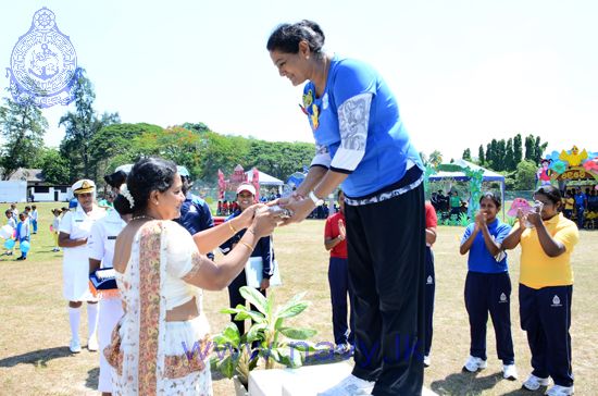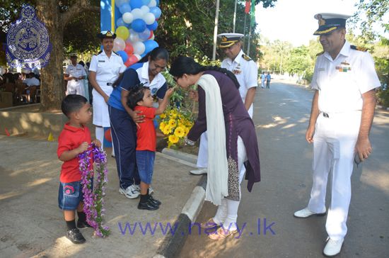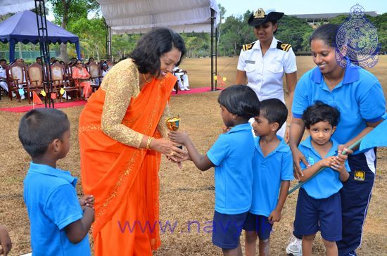 The President of the Navy Seva Vanitha Unit Mrs. Yamuna Wijegunaratne presided the annual Sports Meet of the Naval Pre School of SLNS Gemunu held in the Cricket ground of SLNS Gemunu today (31). The annual Sports Meet of the preschools in SLNS Tissa and SLNS Dakshina were also held, coinciding with this event.