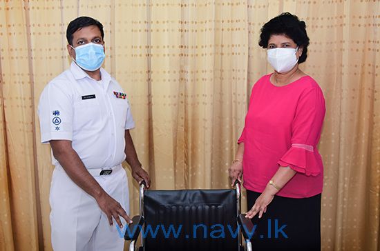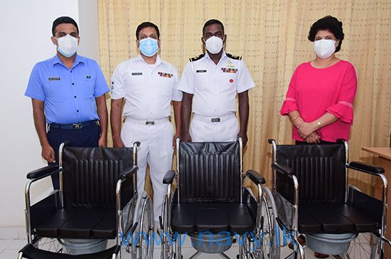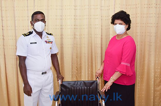Lending ears to the requests of three naval personnel, the donation was made to the father of Fleet Chief Petty Officer JH Chandana, XS 30397, mother of Petty Officer RMA Ratnayake, ED32517 and father of Able Seaman MMND Gunaratne, VAS 75515, taking into account the immobility of those parents due to illness. The donation of 03 wheel chairs to the respective senior and junior sailors was made at the Seva Vanitha Office under the patronage of Mrs. Chandima Ulugetenne.